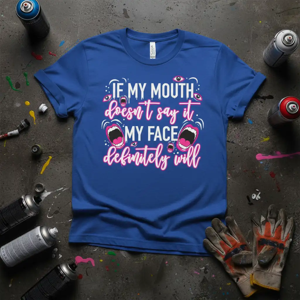 IF MY MOUTH doesn’t say it MY FACE definitely will, and this t-shirt is here to prove it. Designed for those who wear their emotions on their sleeve – or rather, their chest – this tee is a vibrant declaration of unfiltered expression. It’s the perfect way to communicate your thoughts and feelings without uttering a single word, making it a standout piece for any wardrobe. Embrace your bold personality and let your facial expressions do the talking.