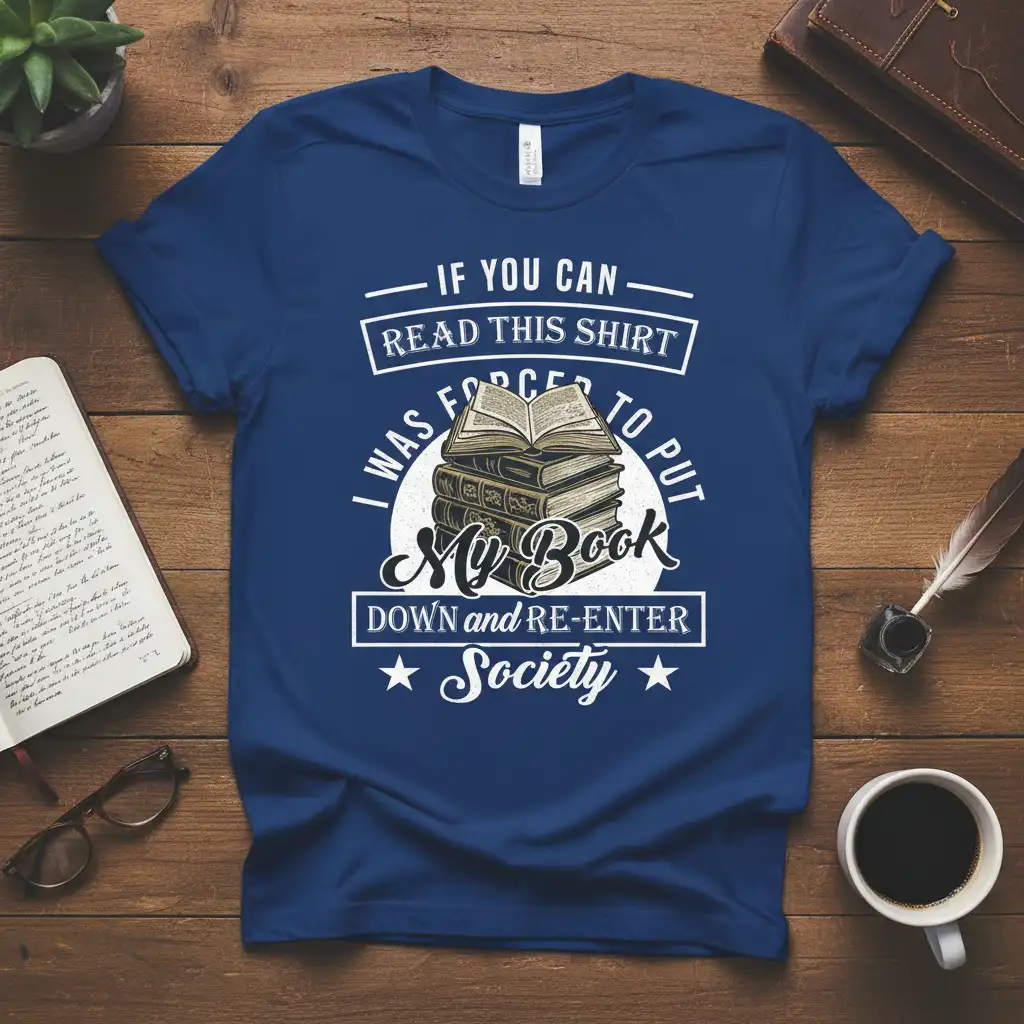 IF YOU CAN READ THIS SHIRT I WAS FORCED TO PUT My Book DOWN and RE-ENTER Society – this witty and relatable slogan is emblazoned on a comfortable tee, making it the ultimate statement piece for any true book lover. It perfectly captures the feeling of being so engrossed in a story that the outside world fades away. This shirt is more than just apparel; it’s a badge of honor for those who find their greatest adventures between the pages of a book and often feel a profound reluctance to rejoin the hustle and bustle of everyday life. It’s designed for comfort, style, and a good laugh among fellow bibliophiles who understand the struggle.