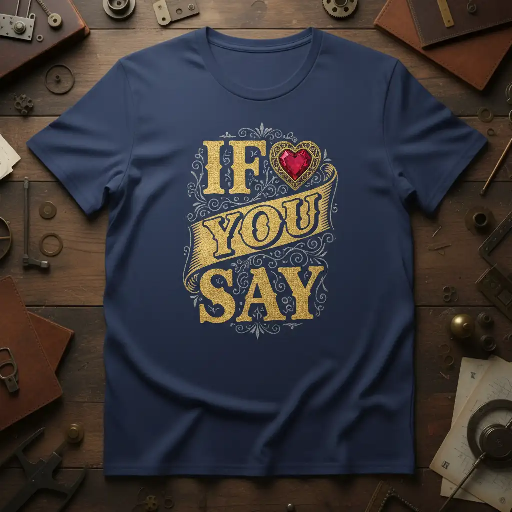 This “If You Say” t-shirt is available in a range of sizes from S to 3XL, ensuring a comfortable and flattering fit for everyone. You can choose from classic colors like Black, Red, Navy, White, Dark Heather, and Royal to best match your personal style. Each color option enhances the visual appeal of the gold lettering and the vibrant heart, making the design pop.