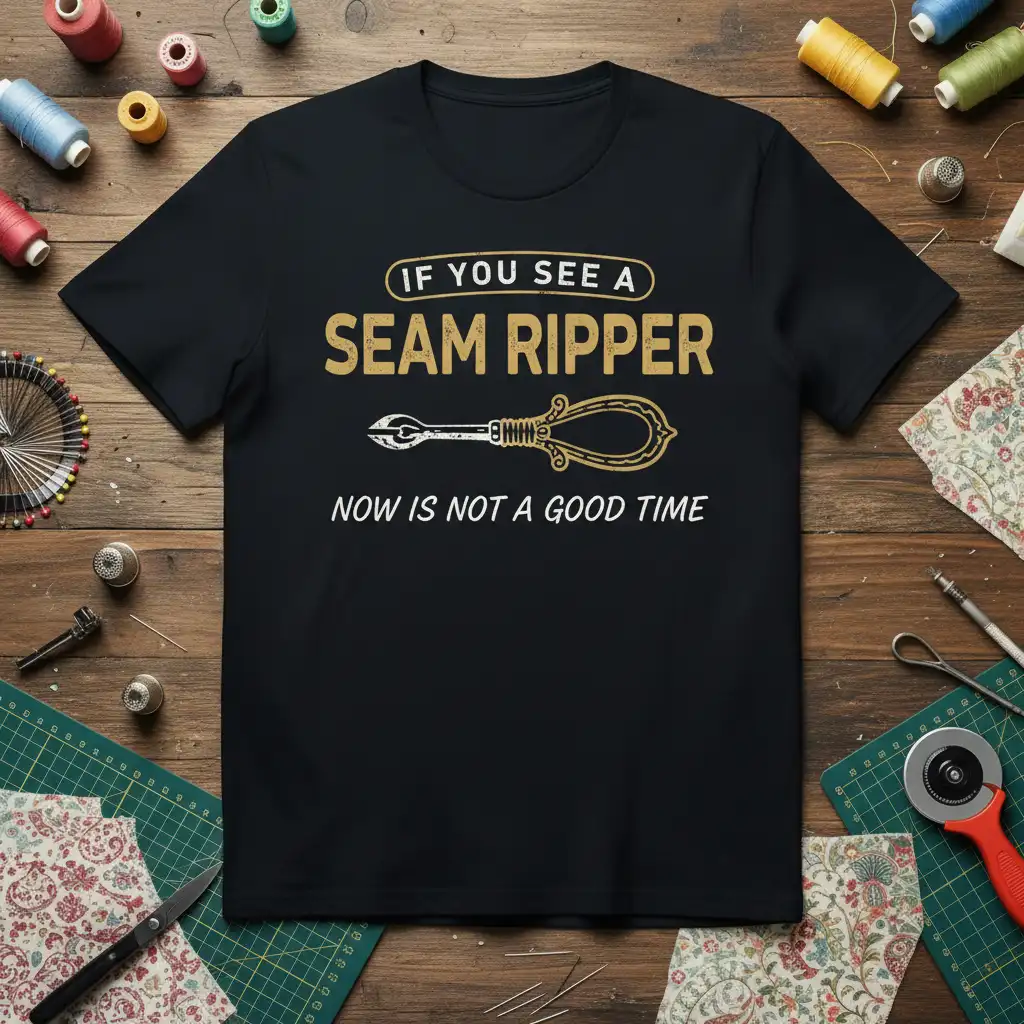 If You See A Seam Ripper Now Is Not A Good Time, this t-shirt is the ultimate statement piece for anyone who understands the delicate balance of sewing and the importance of not being interrupted. It’s a humorous nod to the essential tool every seamstress, quilter, and crafter relies on. This shirt is more than just apparel; it’s a badge of honor for those who dedicate their time and skill to creating beautiful fabrics and garments. Perfect for gifting or treating yourself, it brings a smile and a knowing wink to fellow creatives. Embrace your passion and let the world know when your creative zone is truly sacred.