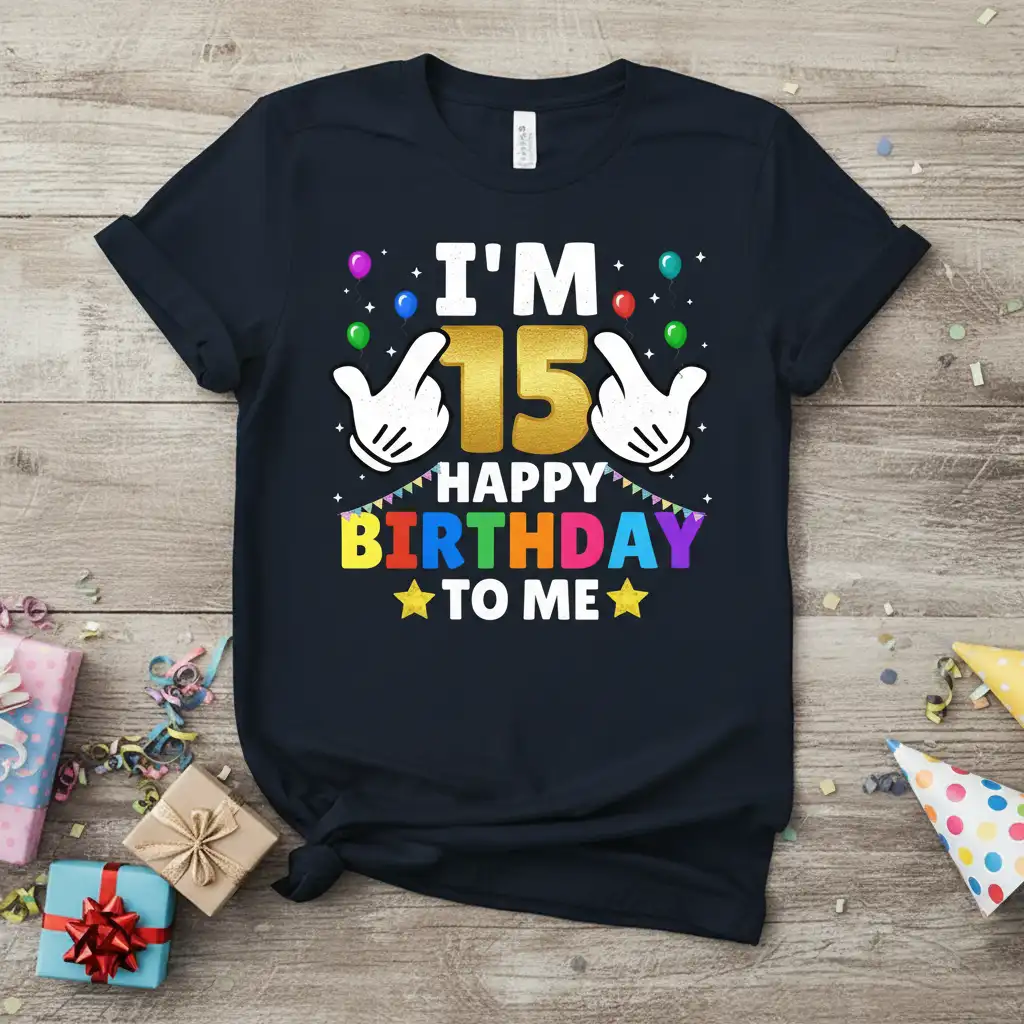 This unique design makes the “I’m 15 Happy Birthday To Me” shirt a standout choice for any party or gathering. The cheerful colors and festive imagery ensure that your birthday outfit is as joyful as the occasion itself. It’s more than just apparel; it’s a wearable celebration.