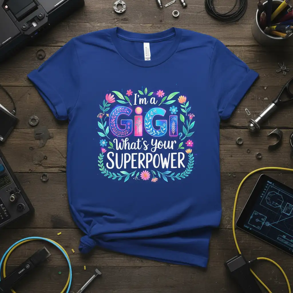 Pick from Black, Navy, Royal, Dark Heather, Red, and White to match your mood and wardrobe staples. Each colorway keeps the I’m a GIGI What’s your SUPERPOWER design clear and photo-ready for everyday wear.