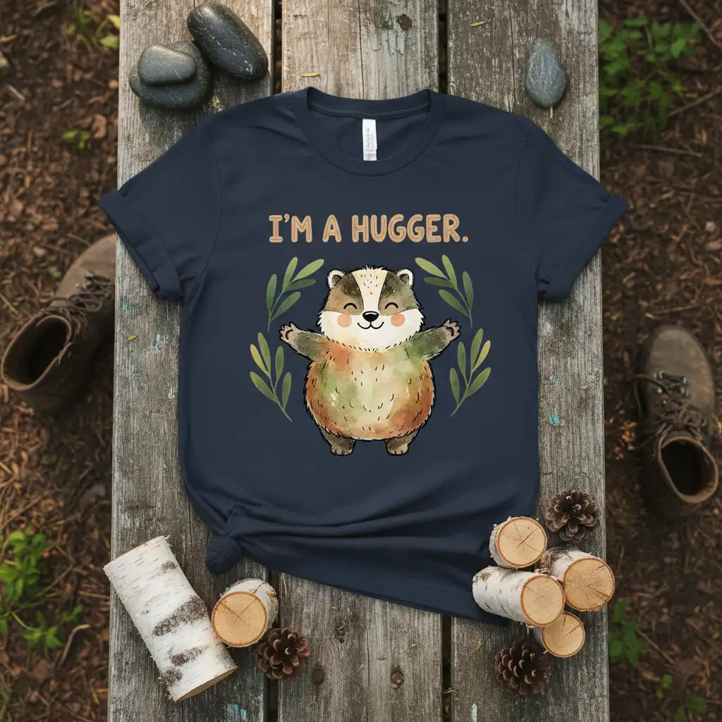 I’M A HUGGER. This charming t-shirt design captures the essence of warmth and affection with its adorable badger graphic. Perfect for anyone who loves spreading positivity and enjoys cozy, nature-inspired apparel, this tee is sure to become a favorite. It embodies a spirit of kindness and approachability, making it a wonderful addition to any wardrobe. The gentle watercolor style adds a unique artistic touch, setting it apart from ordinary graphic tees.