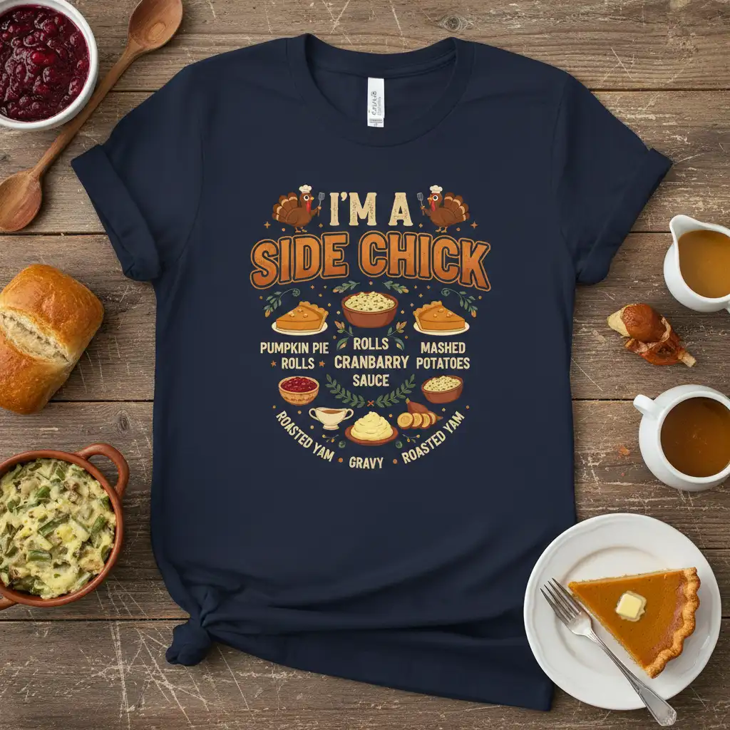 Showcasing a playful and witty slogan, this tee is ideal for anyone who loves Thanksgiving food and enjoys a good laugh. It’s a fantastic way to express your personality and your passion for the culinary traditions that make this holiday so special. This I’m a side chick design captures the essence of comfort food and festive cheer, ensuring you’ll stand out in the best way possible.