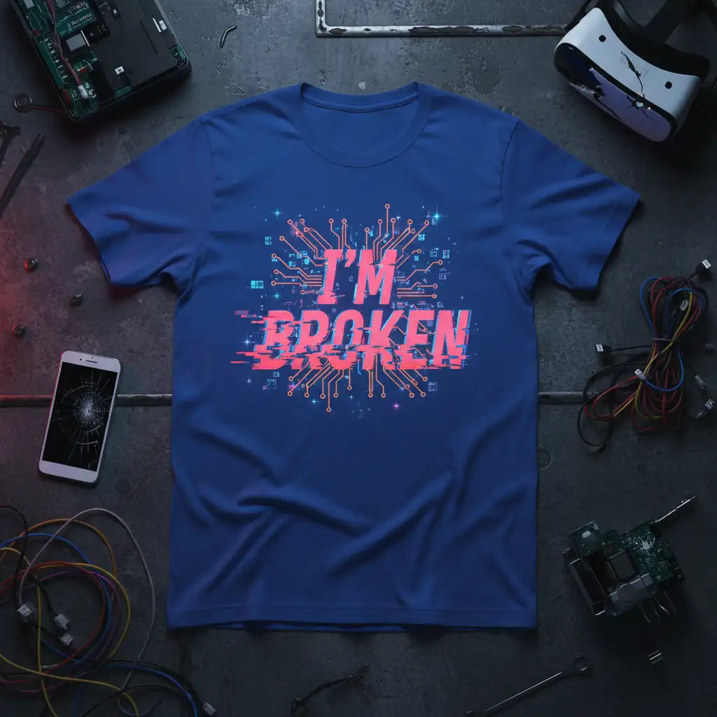 Don’t miss out on the opportunity to own this distinctive “I’m Broken” t-shirt. It’s a perfect blend of humor, style, and tech culture, designed for those who aren’t afraid to show their geeky side. Add this unique graphic tee to your collection today and wear your tech pride with confidence. It’s more than just clothing; it’s a way to express yourself and connect with the vibrant world of technology and gaming. Get yours now and let your circuits do the talking!