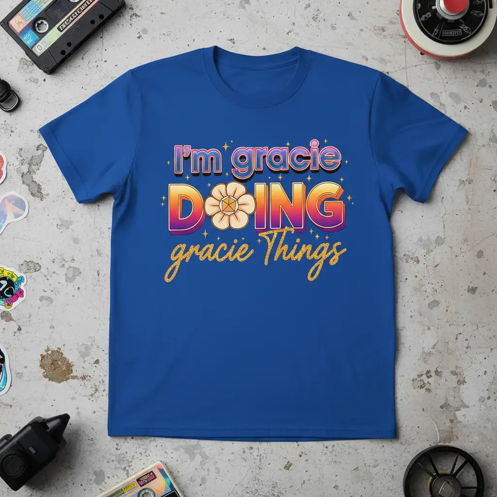 Don’t miss out on this opportunity to own or gift a truly special piece of apparel. The “I’m Gracie Doing Gracie Things” t-shirt is more than just clothing; it’s a celebration of identity and fun. It’s the ideal way to express yourself or show someone named Gracie how much you appreciate them. Grab this delightful, personalized tee and let your Gracie spirit shine bright!