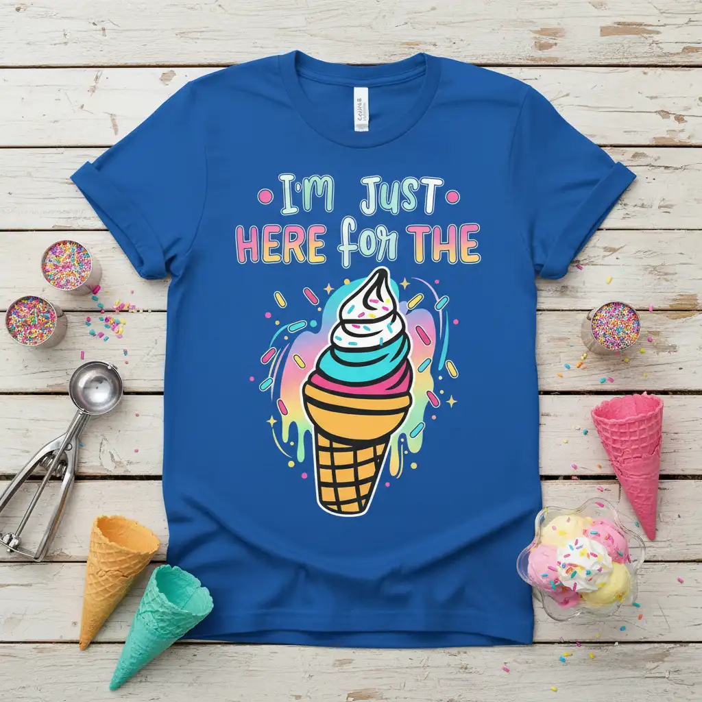 This “I’m Just Here For The” t-shirt is the quintessential piece for summer celebrations and everyday enjoyment. Its playful design perfectly captures the essence of warm weather fun and the irresistible allure of ice cream. It’s the ultimate way to showcase your personality and your love for sweet treats during any season.