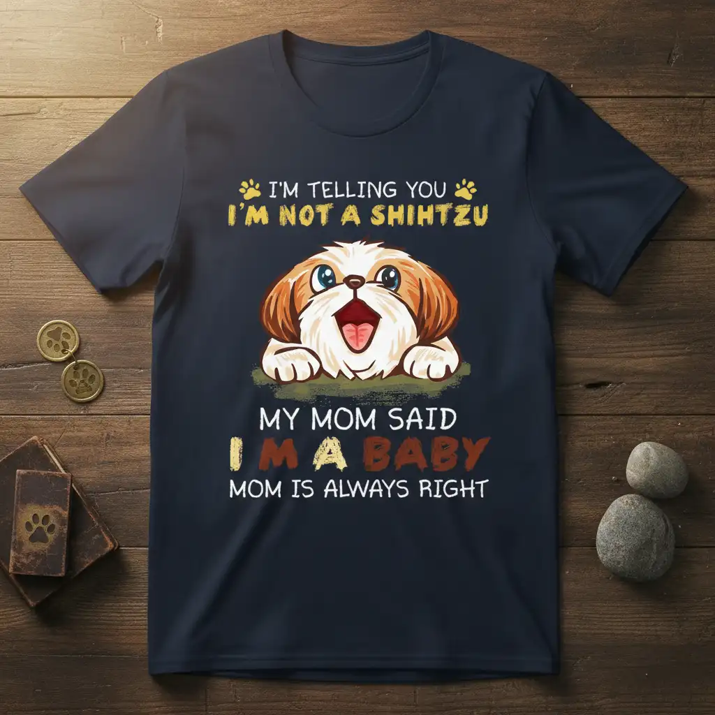This design brilliantly captures the humorous reality many dog owners face. The text, “I’m Telling You I’m Not a Shitzu,” is followed by the ultimate justification: “My Mom Said I’m A Baby Mom Is Always Right.” This playful contradiction, coupled with an adorable shih tzu graphic, makes it an instant favorite. It’s a testament to the fact that no matter how old or what breed our dogs are, in our hearts, they remain our precious babies.