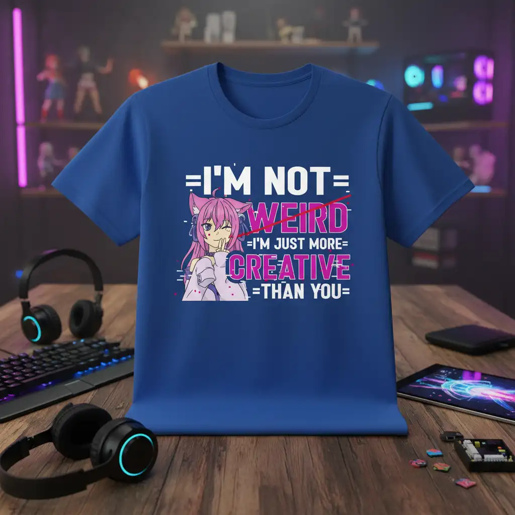 Celebrate your individuality with the “I’m Not Weird I’m Just More Creative Than You” tee, featuring a vibrant anime girl design. This comfortable and stylish shirt is perfect for expressing your unique personality. It makes an excellent gift for friends who embrace their creative spirit.