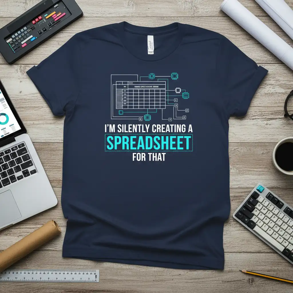 I’M SILENTLY CREATING A SPREADSHEET FOR THAT, this statement t-shirt captures the essence of the data-driven individual who finds solace and power in the world of spreadsheets. It’s a clever nod to the meticulous work involved in data analysis, financial planning, and business strategy, all done with quiet determination. This shirt is perfect for anyone who understands the satisfaction of a well-organized sheet and the insights it can reveal. Wear it to express your passion for numbers and logic in a fun, casual way.