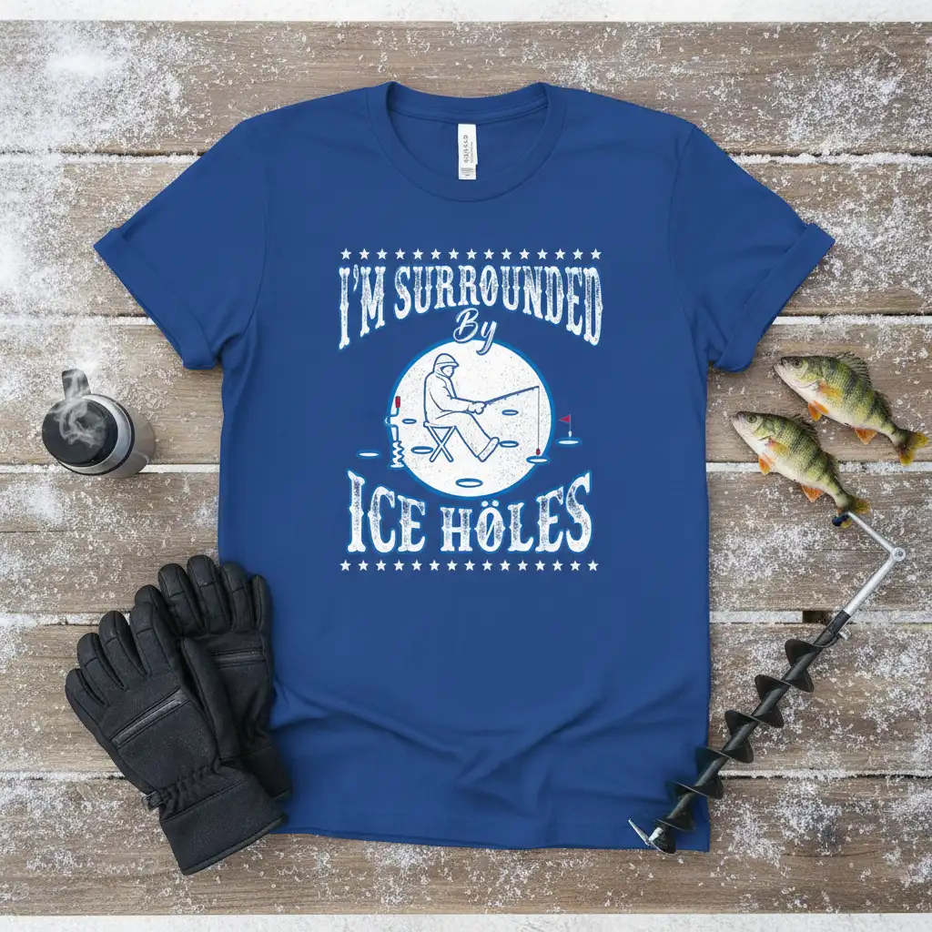 This “I’m Surrounded By Ice Holes” t-shirt is a fantastic way to express your love for ice fishing and connect with fellow enthusiasts. It’s a conversation starter and a comfortable addition to your fishing wardrobe. Don’t miss out on the chance to own this unique piece of ice fishing apparel. Order yours today and wear your passion proudly!