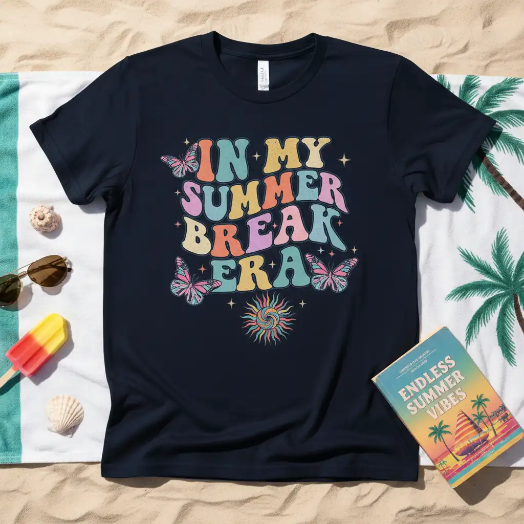 Don’t let another summer pass by without making a statement. The “In My Summer Break Era” tee is your invitation to fully immerse yourself in the spirit of the season. Its comfortable design and captivating graphic make it perfect for creating lasting memories. Whether you’re planning an epic vacation or simply enjoying local sunshine, this shirt is sure to become a cherished part of your summer wardrobe. Grab this must-have piece today and get ready to live your best summer life!