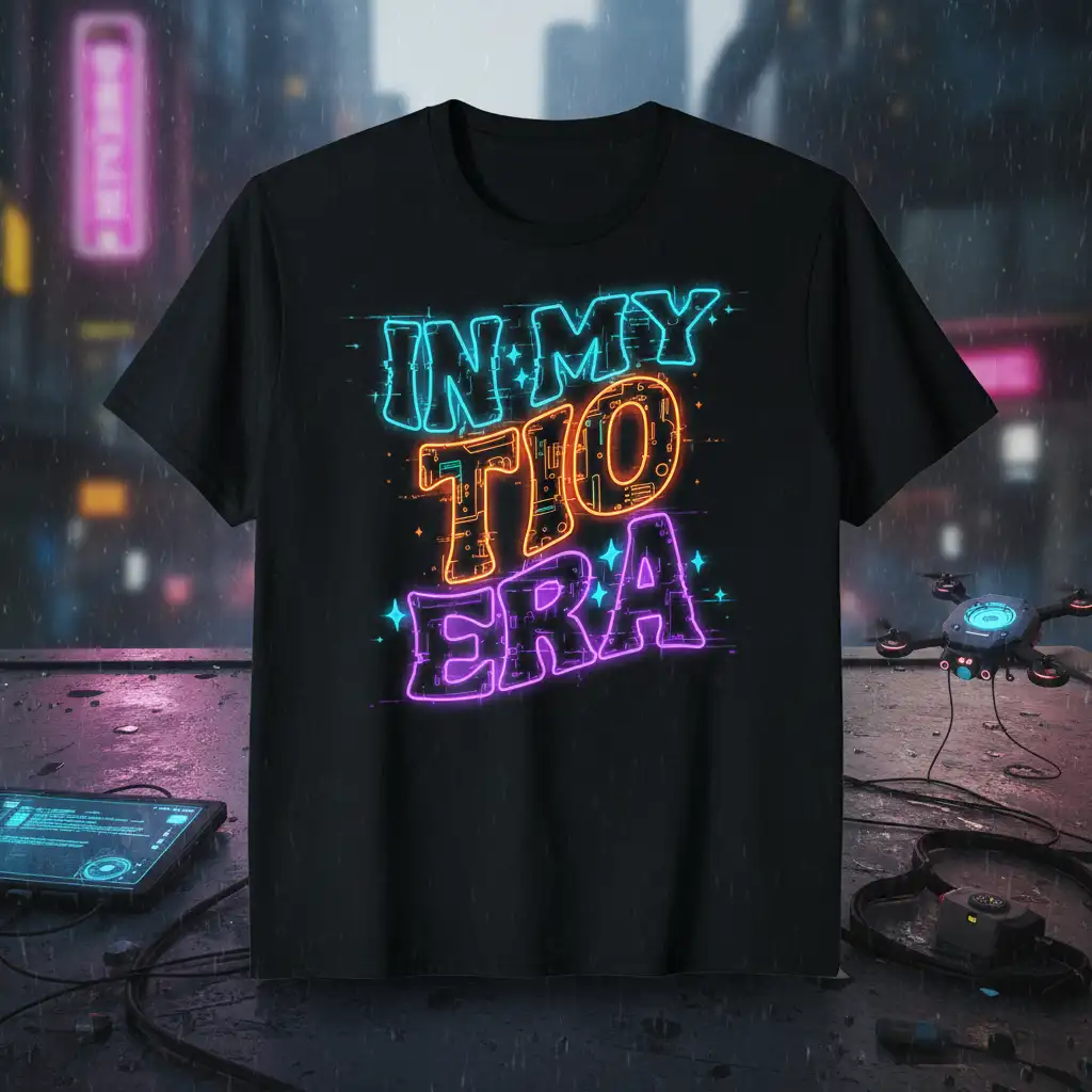 The graphic features a captivating neon effect, reminiscent of retro-futuristic aesthetics. Each letter of “IN MY TIO ERA” is outlined in bright, glowing colors, creating a dynamic visual appeal. This unique design ensures you’ll stand out and proudly represent your Tio role. It’s a fantastic gift option that shows thoughtfulness and appreciation for the special men in our lives.