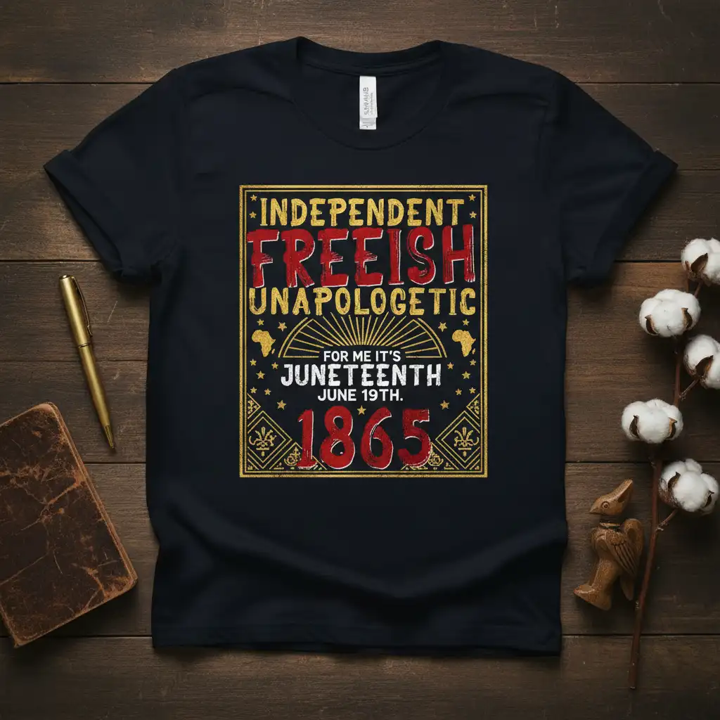 This Juneteenth t-shirt is an invitation to reflect, celebrate, and share the importance of this historic day. The design’s powerful message, “Independent Freeish Unapologetic,” combined with the crucial date and year, makes it an indispensable item for any Juneteenth commemoration. It’s a wearable piece of history that sparks conversation and fosters a deeper understanding of the Emancipation Proclamation’s impact. Grab yours today and wear your freedom with pride!