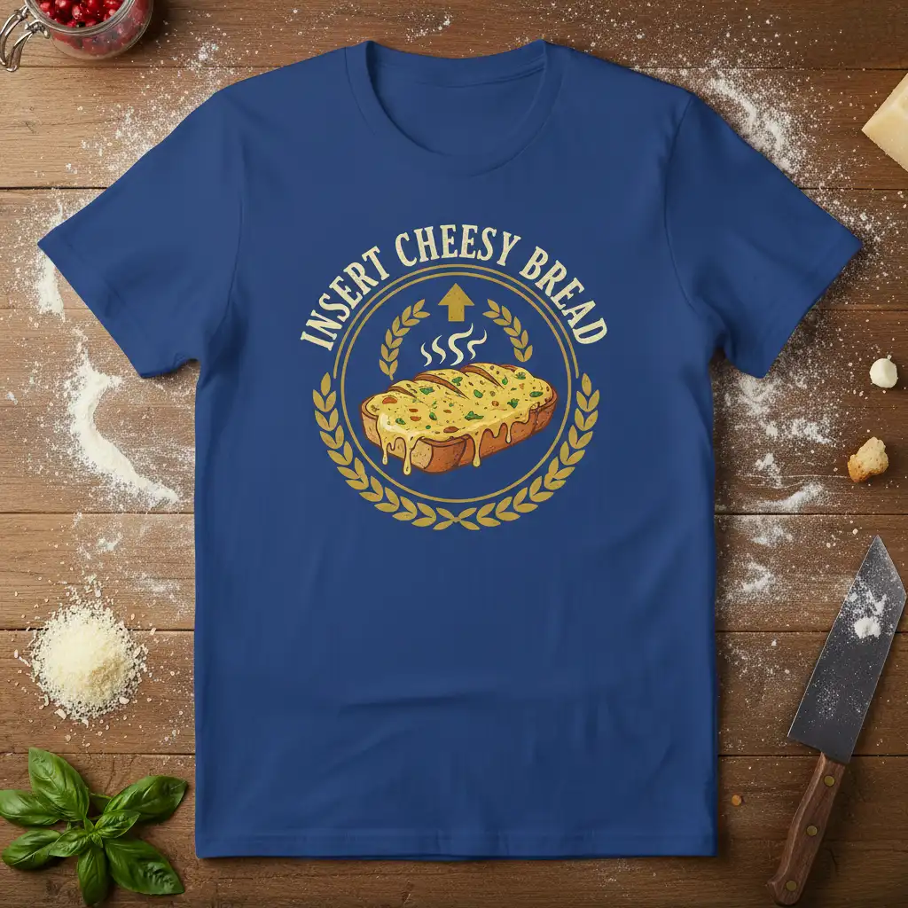 Insert Cheesy Bread graphic tee is designed for those who truly appreciate the finer things in life, especially when those things involve melted cheese and warm, crusty bread. This shirt speaks to the soul of every foodie, baker, and carb enthusiast who understands that sometimes, the only answer to a craving is a generous portion of cheesy goodness. It’s more than just apparel; it’s a statement of delicious intent, perfect for sparking joy and conversation wherever you go.