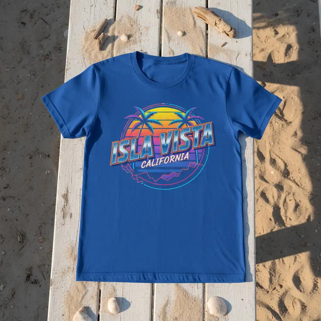 This t-shirt truly embodies the spirit of coastal vibes; explore more ISLA VISTA CALIFORNIA styles that capture the essence of sun-drenched adventures.