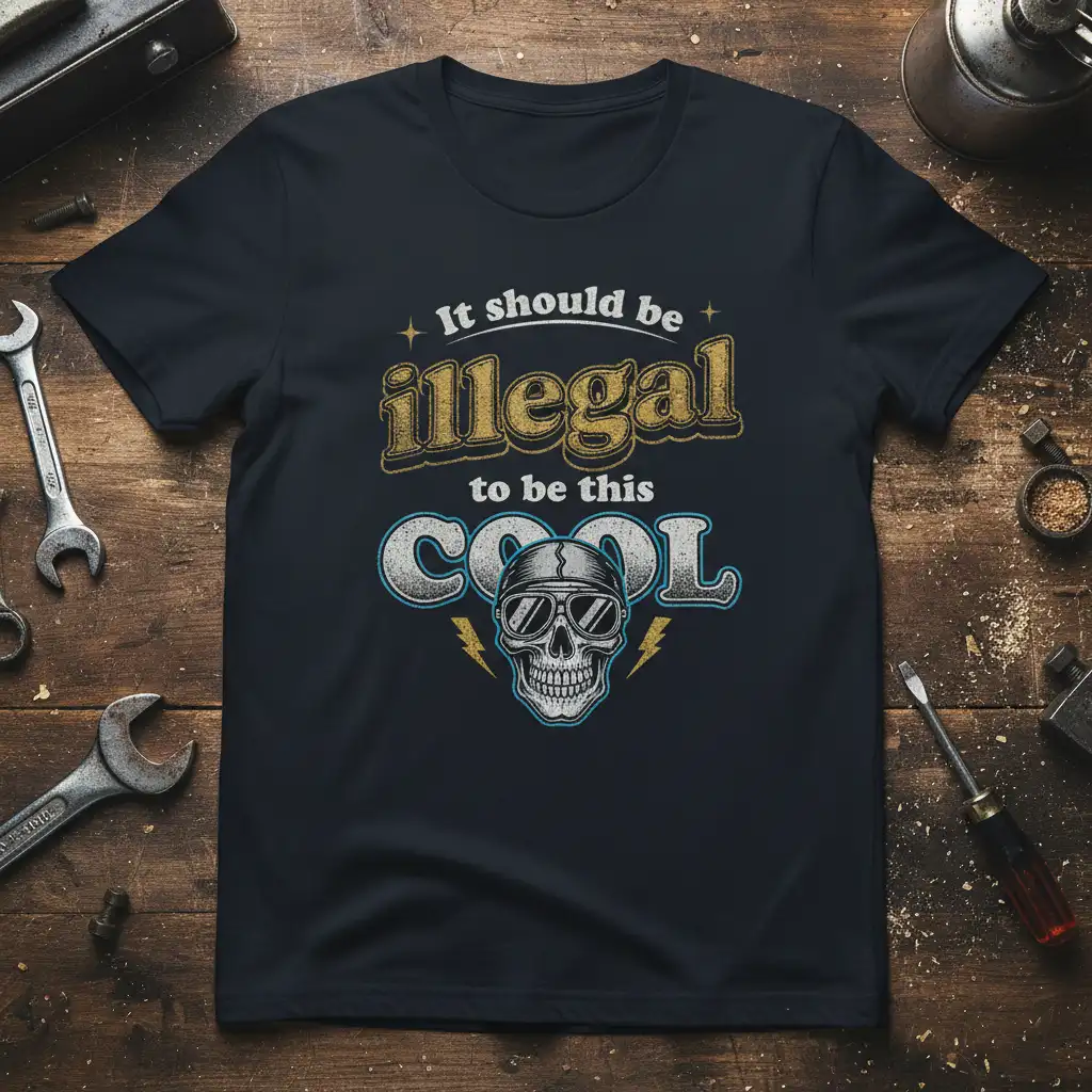 Searching for a gift that truly stands out? This “It should be illegal to be this COOL” t-shirt is an excellent choice for birthdays, holidays, or just because. It’s perfect for the biker, the rebel, the comedian, or anyone who has a larger-than-life personality and a great sense of humor. Give the gift of undeniable style and a powerful statement that they’ll love to wear.