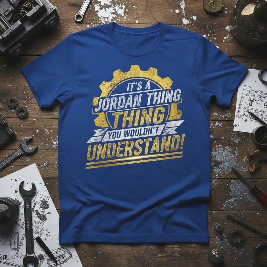 This t-shirt isn’t just about a name; it’s about a legacy and a shared understanding that binds people together. The bold text and the striking gear emblem work in harmony to create a design that is both eye-catching and deeply symbolic. It’s a perfect way to showcase your Jordan pride and connect with fellow Jordans, whether at a family reunion or out in the world. The distinctiveness of the phrase ensures that it stands out and sparks curiosity, inviting others to learn more about the special “Jordan thing.”