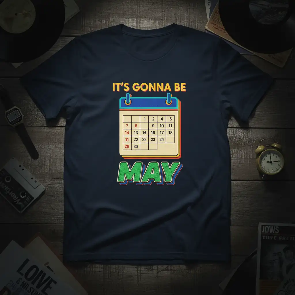 It’s Gonna Be May! Get ready to embrace the excitement of the fifth month with this uniquely designed t-shirt. This vibrant graphic tee captures the anticipation and joy that comes with the arrival of May, featuring a fun retro calendar motif. It’s the perfect way to express your enthusiasm for spring, birthdays, or simply the start of a beautiful new month. Made for comfort and style, this shirt is sure to become a favorite in your wardrobe. Wear your excitement proudly and let everyone know your favorite time of year is here.