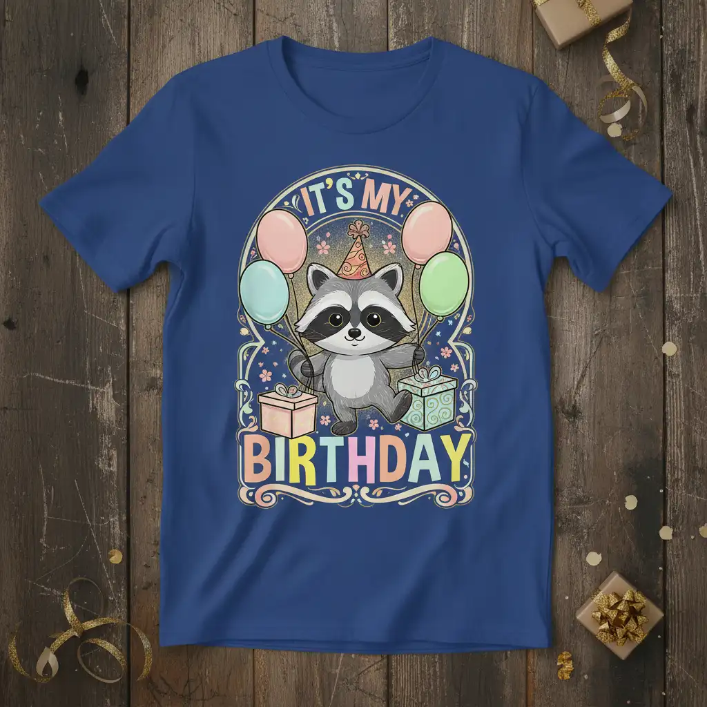 Make their birthday extra special with this “It’s My Birthday” Raccoon T-Shirt, featuring a super cute raccoon ready to party! This comfortable and vibrant tee is the perfect way for any child to announce their big day. It’s a delightful gift that brings smiles and celebrates their birthday in style.