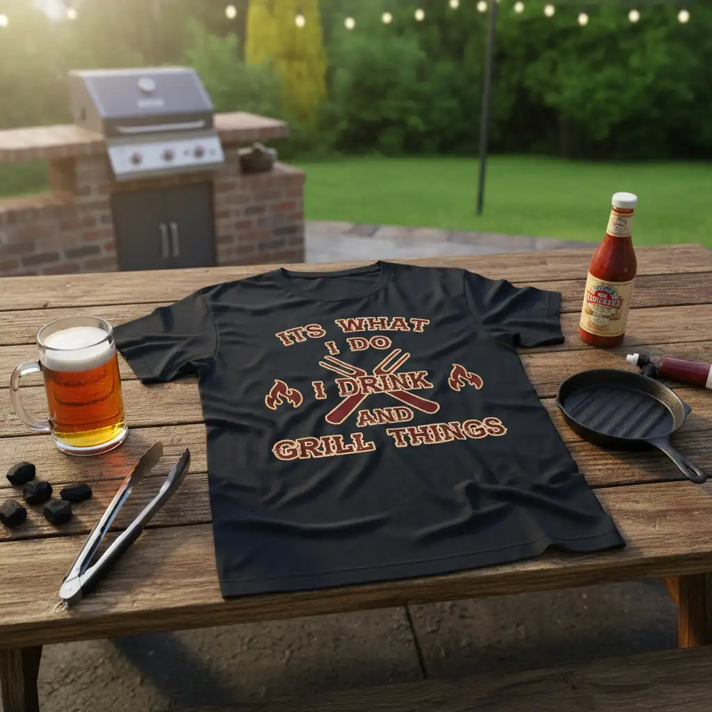 This “Its What I Do I Drink And Grill Things” t-shirt is more than just casual wear; it’s a way to express your identity as a barbecue aficionado. It’s for the individual who takes pride in their grilling skills and enjoys sharing their passion with others. The design is straightforward, memorable, and instantly recognizable to anyone who appreciates a good barbecue.