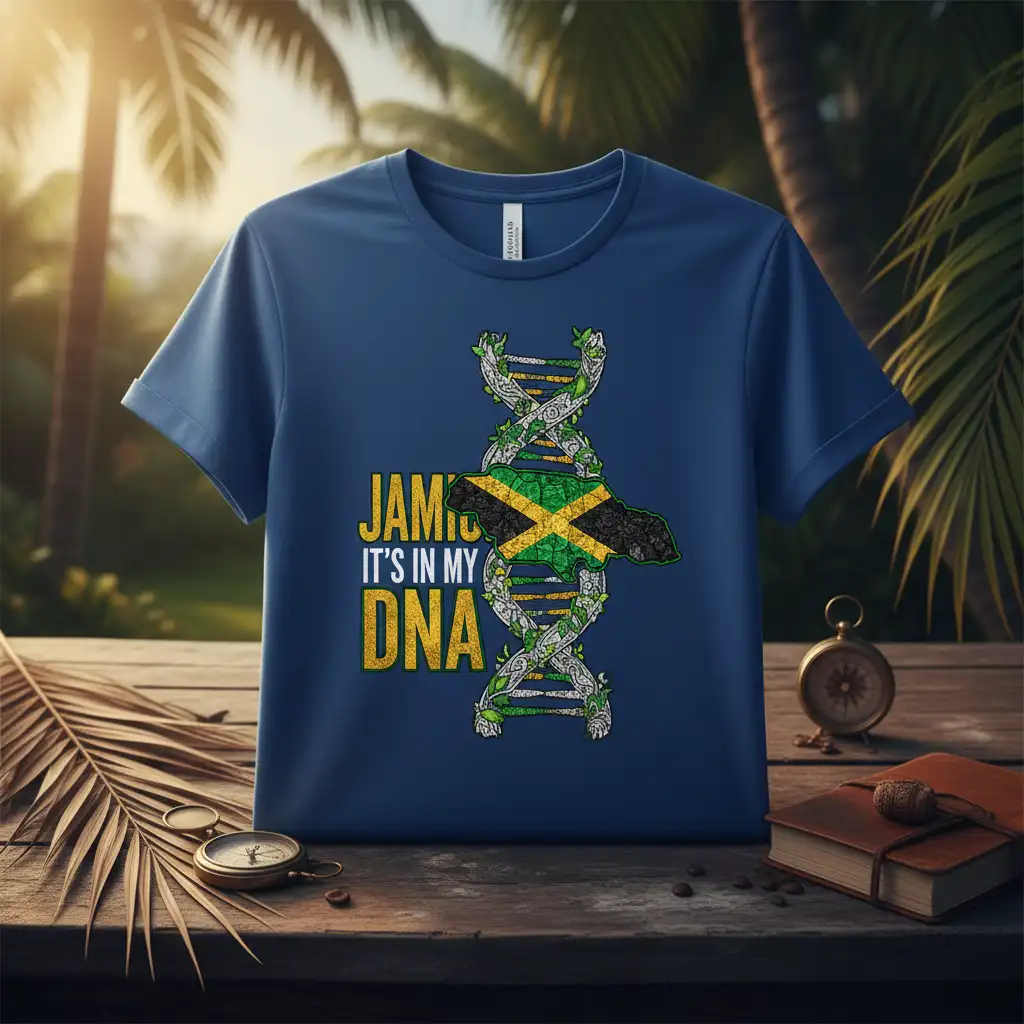Jamaica It’s In My DNA is more than just a phrase; it’s a declaration of profound heritage and an unshakeable connection to the island’s vibrant spirit. This t-shirt captures that essence, blending iconic symbols of Jamaica with the fundamental building blocks of life itself. It’s designed for those who carry the island’s rhythm in their soul and want to showcase their pride with style and authenticity. Wear your story and let the world know where your heart truly lies.