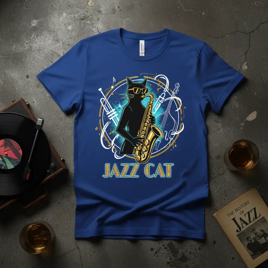 Jazz Cat is the purr-fect statement piece for any music lover with a penchant for felines. This unique t-shirt design captures the soulful essence of jazz music and the cool demeanor of a cat. It’s more than just apparel; it’s a wearable piece of art that resonates with the rhythm of the city and the quiet grace of a cat. Ideal for gifting or adding a touch of personality to your own wardrobe, this tee is designed to turn heads and spark conversations.