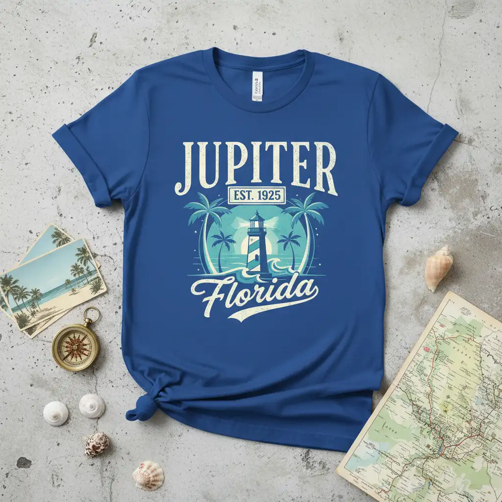 The “Est. 1925” detail adds a unique historical touch, appealing to those who appreciate the heritage of their favorite destinations. Whether you’re a local, a frequent visitor, or simply admire the beauty of Florida’s coast, this shirt serves as a wonderful reminder of Jupiter’s enduring appeal.