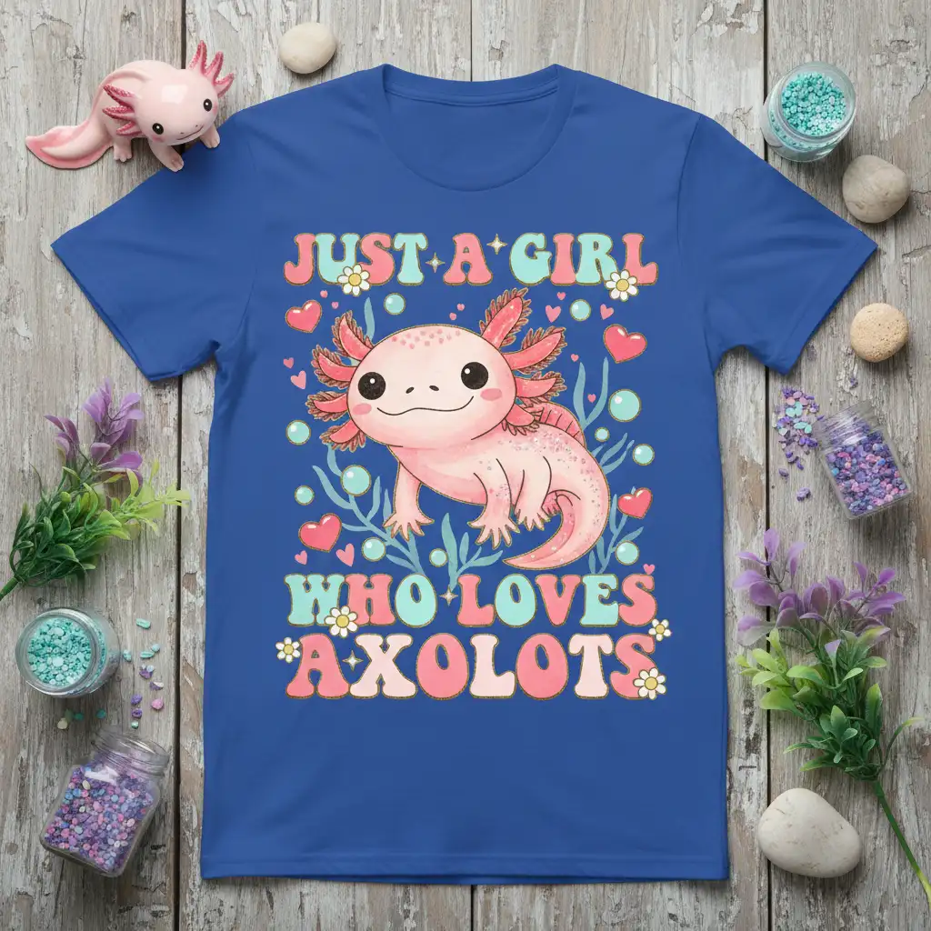 Just A Girl Who Loves Axolotls proudly declares your deep affection for these enchanting aquatic creatures. This charming t-shirt is designed for anyone who finds joy in the unique beauty and gentle nature of axolotls. It’s more than just apparel; it’s a statement piece that connects you with fellow enthusiasts and sparks delightful conversations. The vibrant design features a super-cute axolotl illustration, making it an instant favorite for daily wear. Whether you’re treating yourself or searching for the perfect gift, this tee captures the essence of axolotl admiration.