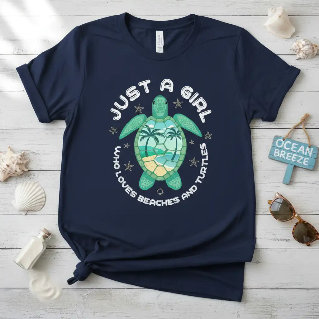 Embrace Your Inner Beach Lover with the “Just A Girl Who Loves Beaches And Turtles” T-Shirt