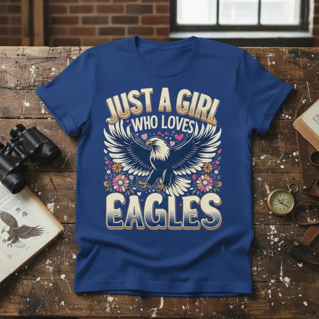 The “JUST A GIRL WHO LOVES EAGLES” t-shirt is designed to make a statement. It’s a conversation starter, a way to connect with fellow bird lovers and patriots. Wear it proudly and let your passion for eagles take flight. This unique graphic tee is a testament to your distinctive taste and your appreciation for the natural world.