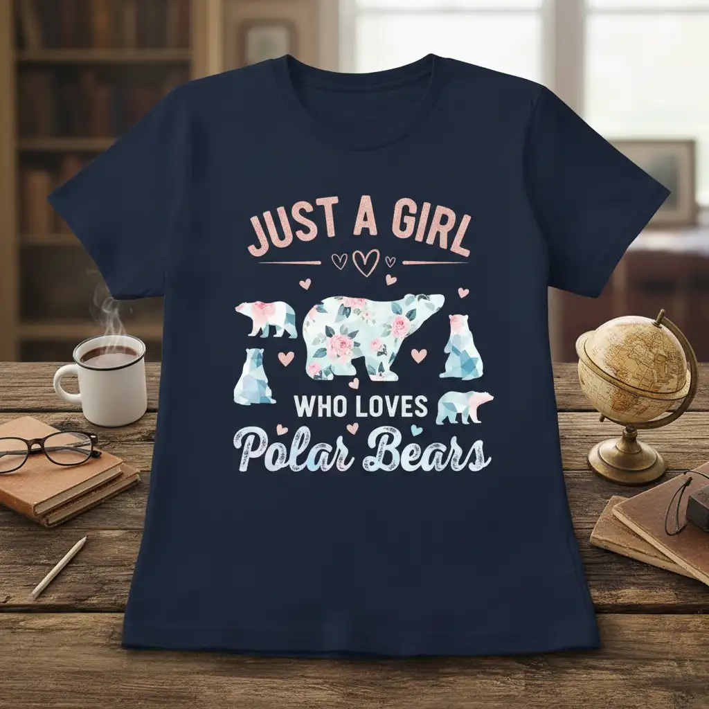 Just a girl who loves Polar Bears adorns this delightful t-shirt, perfect for anyone with a soft spot for these majestic arctic animals. The design features a charming collection of polar bear illustrations, some elegantly decorated with floral patterns and others rendered in a modern geometric style. Each element is thoughtfully placed to create a visually appealing tribute to these incredible creatures. It’s more than just a shirt; it’s a statement of affection for the wonders of the Arctic. This tee is crafted for comfort and style, making it a go-to choice for casual outings and expressing your unique personality.