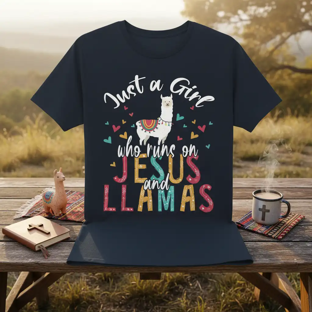 The vibrant colors and playful design make this tee stand out. Whether you’re heading to a casual gathering, running errands, or enjoying a quiet day at home, this shirt offers both comfort and a unique way to express yourself. It’s a fantastic piece for anyone who loves llamas and wants to share their faith.