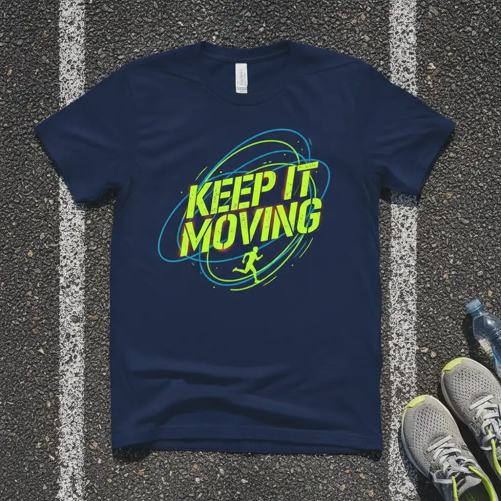 KEEP IT MOVING is more than just a phrase; it’s a mindset that fuels progress and celebrates the journey of an active life. This t-shirt is designed for individuals who understand the importance of consistent effort and the joy found in pushing their limits. Whether you’re hitting the pavement for a morning run, powering through a gym session, or embracing any form of physical activity, this tee serves as a constant reminder to stay dedicated. Its vibrant design and powerful message are perfect for anyone who thrives on movement and personal achievement.