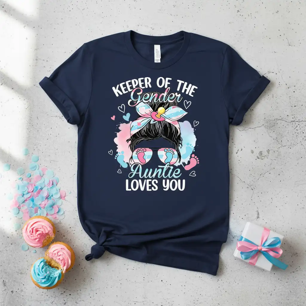 Keeper Of The Gender Auntie Loves You with this charming and festive t-shirt, designed for the most excited aunt-to-be or any beloved aunt celebrating a baby’s upcoming arrival. This unique design perfectly captures the fun and anticipation surrounding a gender reveal party, making it a standout piece for any family gathering. It’s more than just apparel; it’s a declaration of love and involvement in one of life’s most precious moments. Wear it to share your joy and excitement as you await the big news.