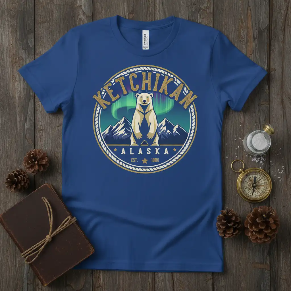 This t-shirt serves as a perfect reminder of the unforgettable experiences Alaska offers, from its unique wildlife to its awe-inspiring celestial displays. It’s a thoughtful gift for friends and family who share a passion for travel, nature, or the captivating beauty of the Alaskan wilderness. Let this “Ketchikan Alaska Est. 1900” tee be your gateway to sharing the magic of this extraordinary place.