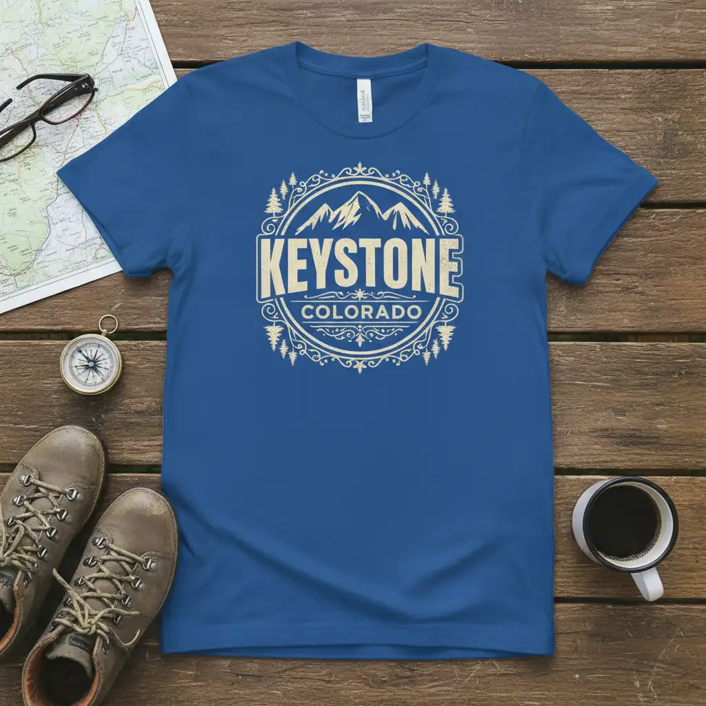 The appeal of Keystone extends beyond its physical beauty; it’s about the experiences and the community. This shirt is crafted to resonate with anyone who has felt the call of the mountains. Whether you’re reminiscing about a past trip or planning your next escape, this design is a perfect companion. It’s designed to be a conversation starter, allowing you to share your passion for this unique Colorado locale.