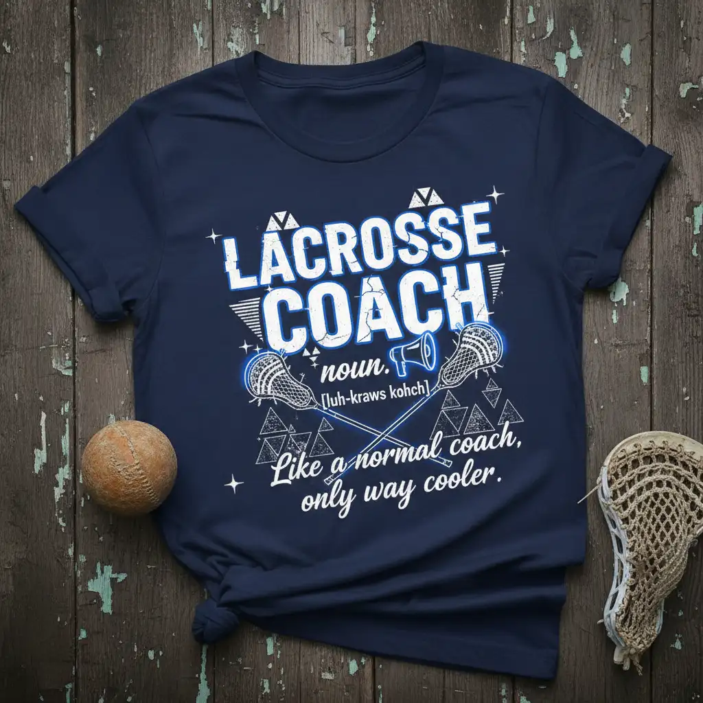 Lacrosse Coach noun. [luh-kraws kohch] Like a normal coach, only way cooler. This unique t-shirt is designed to celebrate the incredible individuals who lead, inspire, and motivate lacrosse teams. It humorously acknowledges their dedication, often going above and beyond the call of duty. It’s more than just apparel; it’s a statement piece for coaches who pour their heart and soul into the sport and their players.