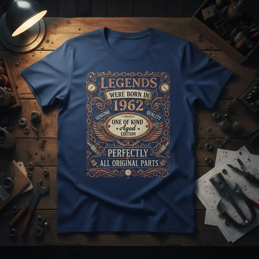 LEGENDS WERE BORN IN 1962 ONE OF KIND AGED EDITION PERFECTLY ALL ORIGINAL PARTS – Legends were born in 1962 and this t-shirt is the perfect way to celebrate that fact. This unique design proclaims that the wearer is a “One of Kind Aged Edition,” “Perfectly All Original Parts.” It’s a fantastic gift for anyone born in that significant year, offering a blend of vintage style and enduring quality. The intricate detailing and classic typography make this tee a standout piece for birthdays or any occasion celebrating a 1962 legend.