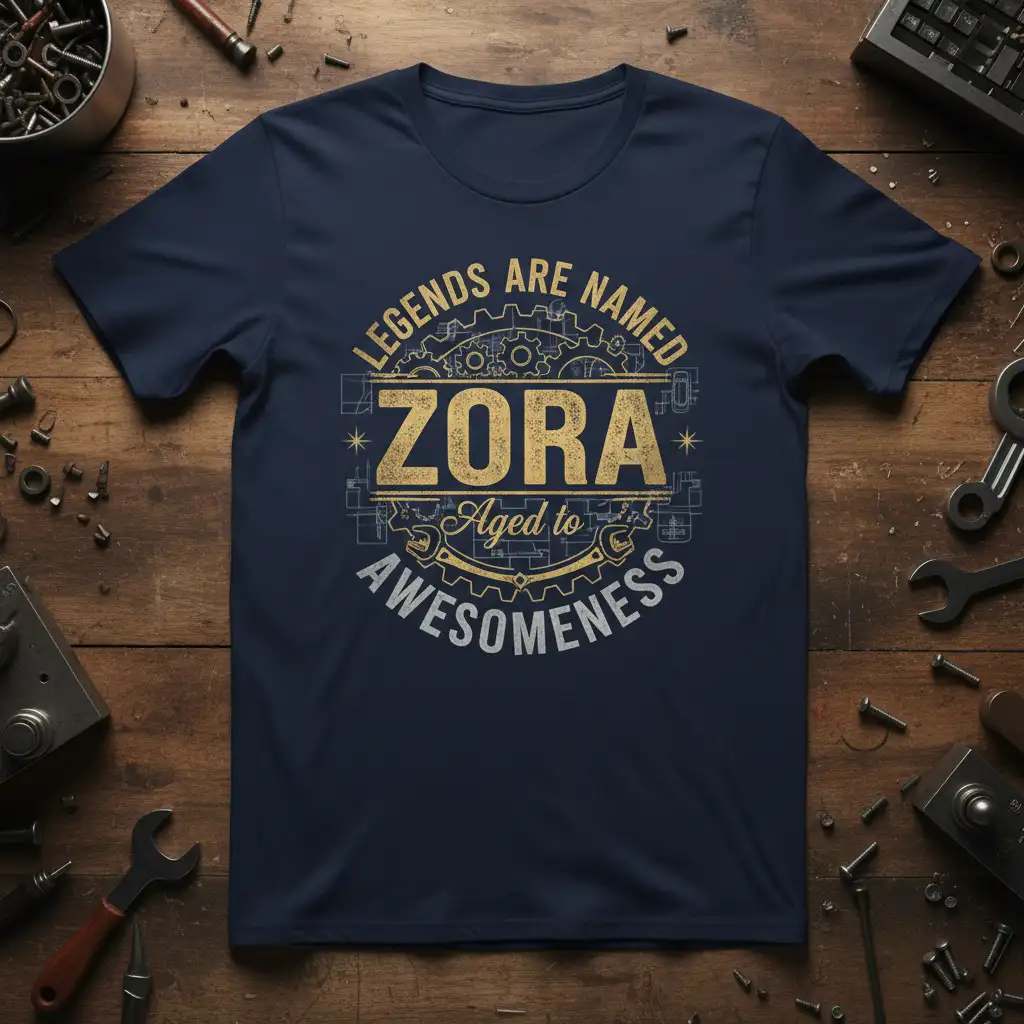 The “Aged to Awesomeness” aspect of the design adds a layer of depth, suggesting that like fine wine or classic machinery, the person named Zora only gets better with time. This sentiment is beautifully captured through the stylized text and subtle mechanical elements. It’s a perfect way to commemorate a birthday, anniversary, or simply to acknowledge the enduring greatness of Zora.