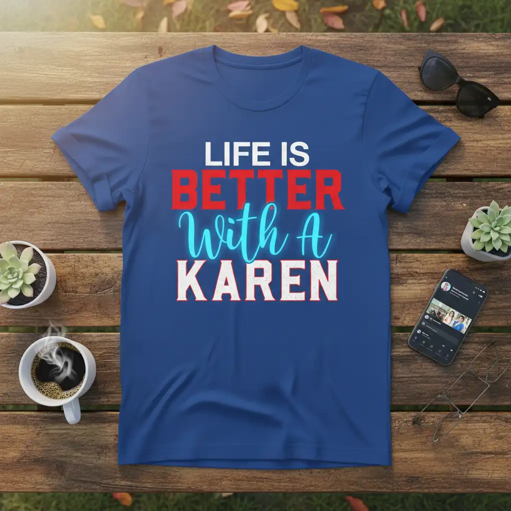 Crafted for both comfort and durability, this “Life Is Better With A Karen” t-shirt is made from premium materials that feel great against your skin. The print is designed to last, resisting fading and peeling even after multiple washes, so the vibrant message remains clear. It’s the ideal blend of quality craftsmanship and witty design, perfect for everyday wear or special occasions.