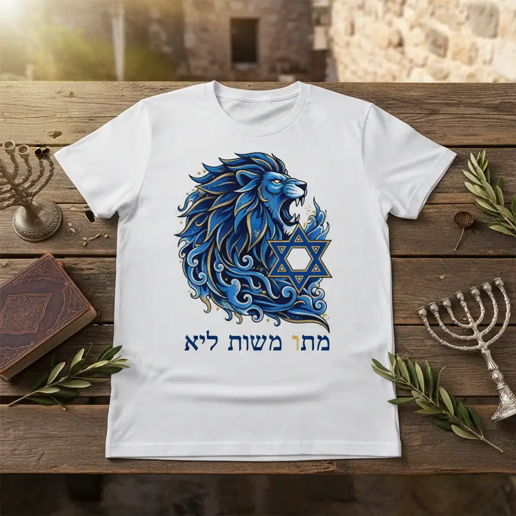 Celebrate your heritage and embrace the symbol of strength with this unique מתן משות ליא t-shirt. Featuring a majestic lion intertwined with the iconic Star of David, this design powerfully represents courage, pride, and Jewish identity. It’s more than just apparel; it’s a statement of faith and a connection to ancient traditions, rendered in striking blue and gold hues. This tee is perfect for holidays like Hanukkah or simply as a daily reminder of your roots.