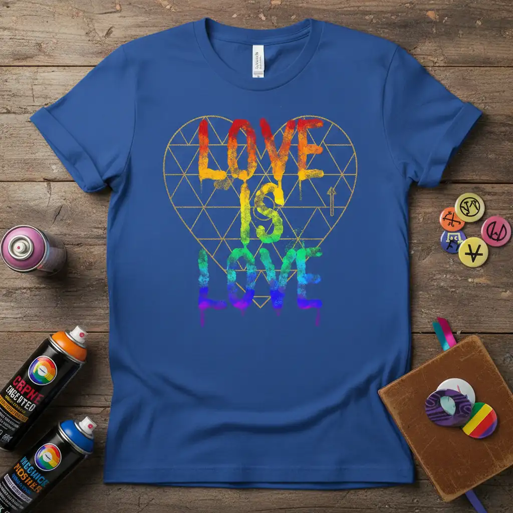 Pick from Black, Navy, Royal, Dark Heather, Red, and White to match your mood and wardrobe staples. Each colorway keeps the LOVE IS LOVE design clear and photo-ready for everyday wear.