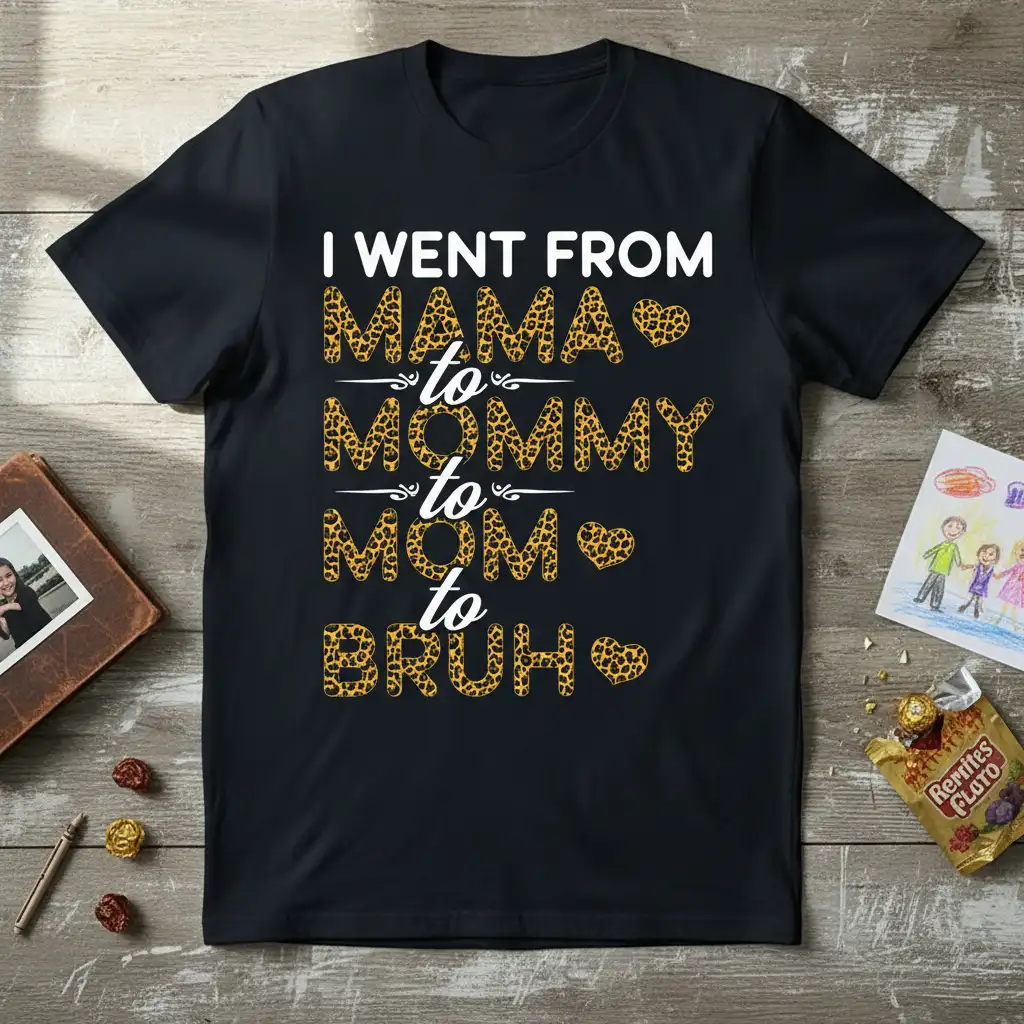 Don’t miss out on this opportunity to own a piece of apparel that truly speaks to the heart of motherhood. This “I Went From Mama to Mommy to Mom to Bruh” t-shirt is the perfect blend of humor, comfort, and style, making it an essential item for any mom. It’s a lighthearted way to acknowledge the incredible, challenging, and ultimately rewarding role of being a mother. Order yours now and wear your mom journey with pride and a big smile!