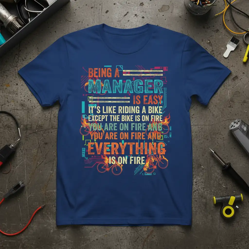 Being A Manager Is Easy It’s Like Riding A Bike Except The Bike Is On Fire You Are On Fire And You Are On Fire And Everything Is On Fire – this iconic phrase perfectly encapsulates the exhilarating, albeit chaotic, experience of being in a managerial position. It’s a statement that resonates deeply with those who lead teams, tackle challenges head-on, and manage multiple priorities simultaneously, often in high-pressure environments. This t-shirt is more than just apparel; it’s a badge of honor for the resilient and dedicated individuals who thrive in the demanding world of management.