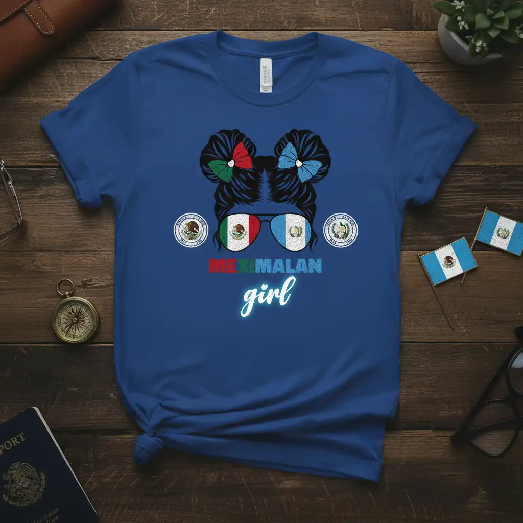 The “MEXIMALAN girl” design is a tribute to the strong, vibrant women who bridge cultures and embrace their dual heritage. It captures the essence of a unique identity, blending influences from both Mexico and Guatemala into a cohesive and proud statement. This t-shirt is perfect for anyone who identifies with this rich cultural background and wants to showcase it with style.