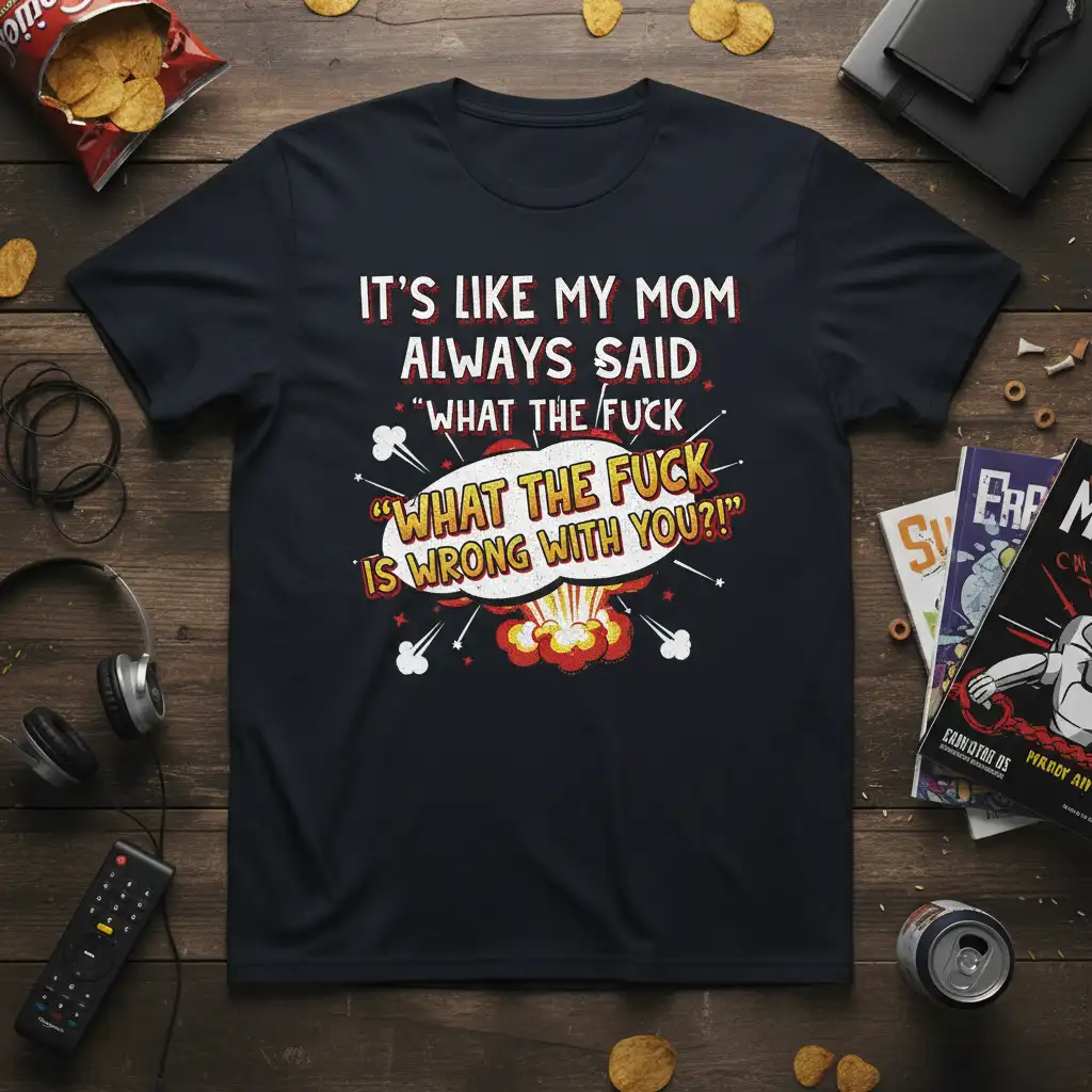 This t-shirt is more than just apparel; it’s a conversation starter and a way to showcase your personality. The “It’s Like My Mom Always Said ‘What The Fuck’ ‘What The Fuck Is Wrong With You?!'” design is perfect for those who love to express themselves with wit and boldness. It’s a fun addition to any outfit, bringing a touch of playful rebellion.