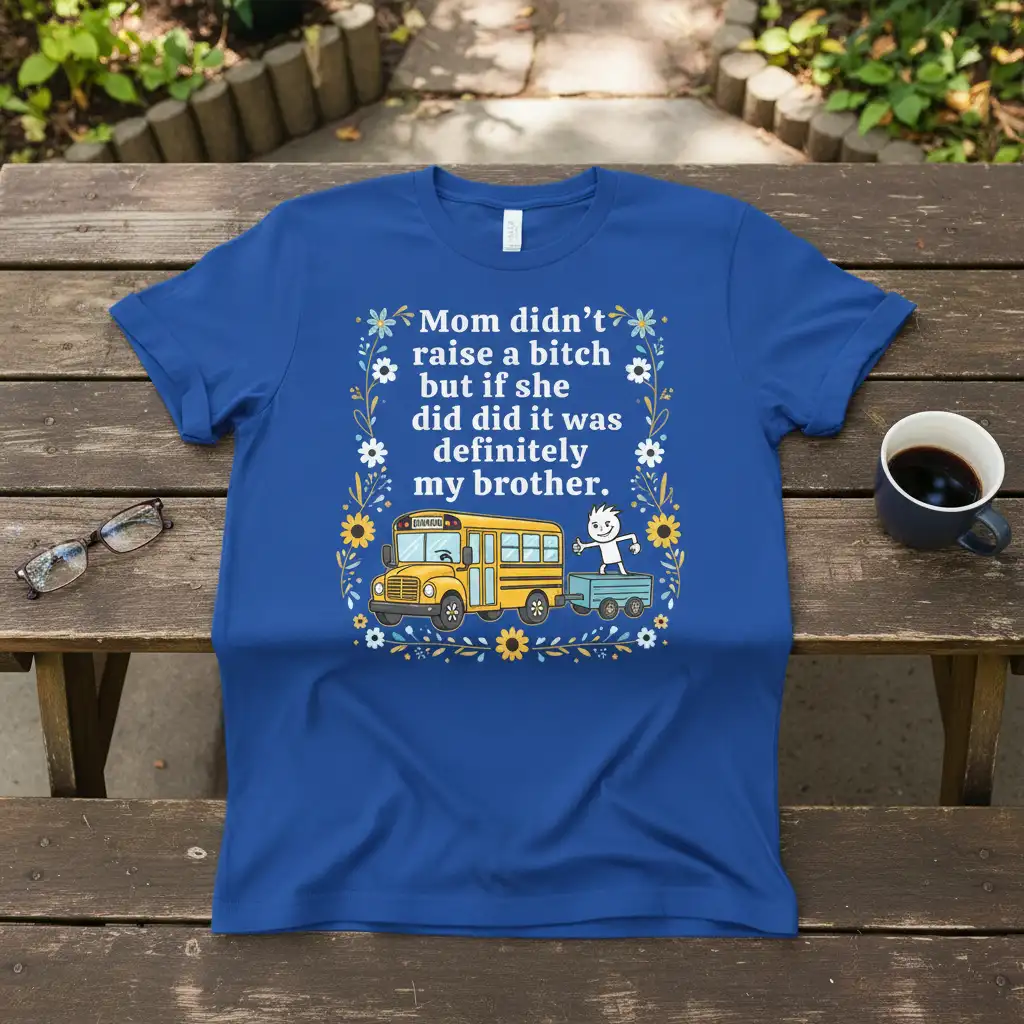 Mom didn’t raise a bitch but if she did did it was definitely my brother. This bold and humorous statement t-shirt is designed for those who appreciate a good laugh and aren’t afraid to express their playful sibling rivalry. It’s a perfect way to show off your family’s unique sense of humor and your unbreakable bond, even if it involves a bit of playful blame-shifting. The eye-catching design is sure to turn heads and spark conversations wherever you go, making it an instant favorite for casual wear. Embrace the fun and let everyone know where the real mischief comes from with this witty apparel.