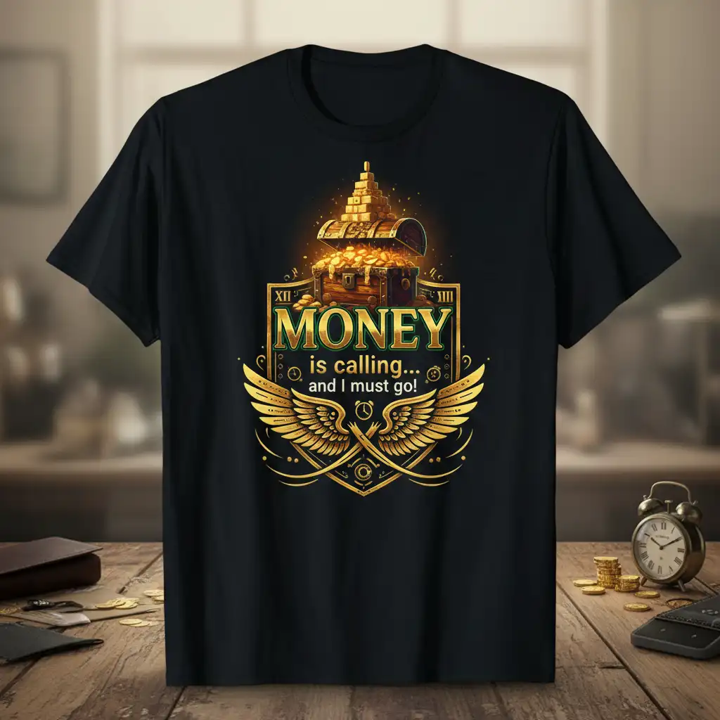 The “MONEY is calling… and I must go!” t-shirt is designed for the ambitious spirit ready to chase their financial dreams. This comfortable tee features a bold graphic and motivational quote, making it a perfect gift for entrepreneurs or anyone focused on wealth. It’s a stylish way to express your drive for success and financial prosperity.