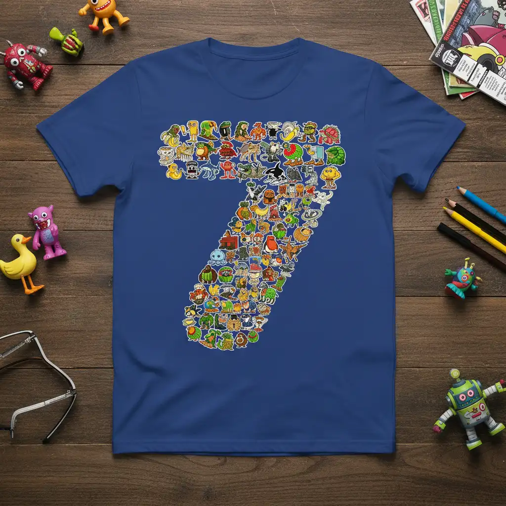 Monster Number 7 T-Shirt Fun Cartoon Character Collage